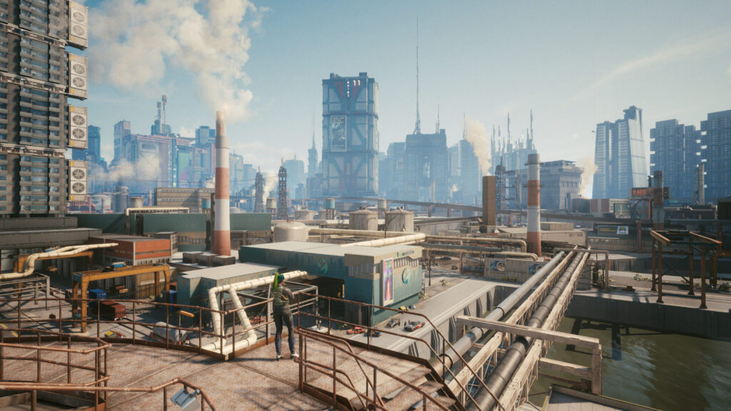 Située en Californie, elle incarne l’excès et les dérives d’un monde dominé par les mégacorporations, où la technologie la plus avancée côtoie une pauvreté extrême. Ses quartiers contrastés, allant des gratte-ciel luxueux de City Center aux zones dangereuses de Pacifica, reflètent une société profondément inégalitaire. Toujours illuminée par les néons et saturée de publicités, elle est à la fois fascinante et oppressante, symbole d’un futur aussi séduisant que cruel.